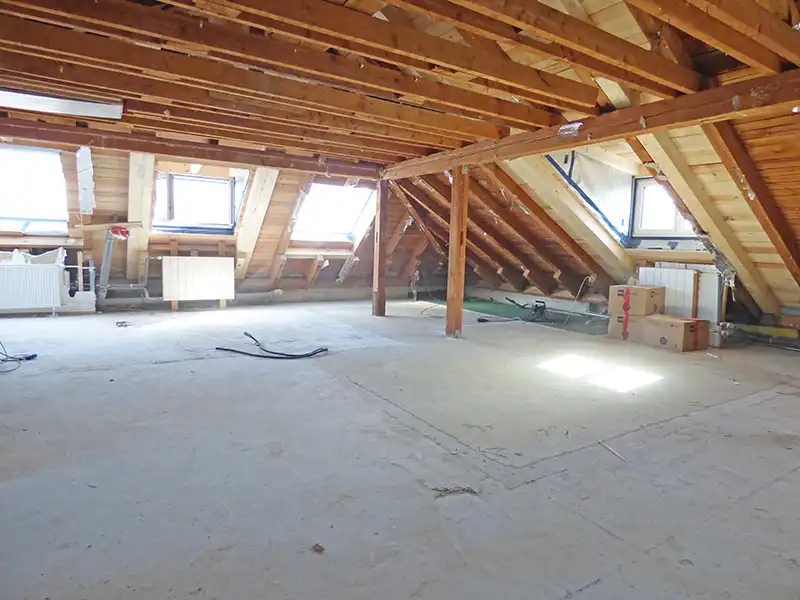 Im Dachgeschoss erwartet Sie ein noch auszubauender, großer Wohnraum mit Anschlüssen für ein weiteres Badezimmer und eine zusätzliche Küche. Der neue Eigentümer hat hier die Möglichkeit, die Raumaufteilung nach seinen eigenen Vorstellungen zu gestalten – ganz flexibel und individuell.