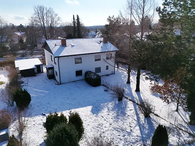 Die voll unterkellerte Doppelhaushälfte wurde in Massivbauweise errichtet. Das Haus verfügt über eine Wohnfläche von ca. 132 m², das Grundstück hat eine Größe von etwa 519 m² und liegt an einer Sackgasse am Ortsrand von Söcking. Über den Eingangsbereich mit Gäste- WC betritt man das Haus, angrenzend befindet sich die große Wohnküche mit Speisekammer, ein Büro und das Wohnzimmer. Davor liegt die sonnige Südterrasse. Das Obergeschoss verfügt über ein großes Schlafzimmer mit Zugang zum Balkon, ein weiteres Schlafzimmer und ein Badezimmer mit Dusche, Badewanne, Toilette und Waschbecken. Im Untergeschoss findet man einen großzügigen Hobbyraum, einen Kellerraum und den Heizungsraum mit Ölheizung. Der große Garten grenzt an ein Feld mit einem schönen Blick ins Grüne. Das Haus befindet sich in einem gepflegten, aber originalen Zustand aus dem Jahr 1976. Wir empfehlen eine komplette Sanierung des Hauses.